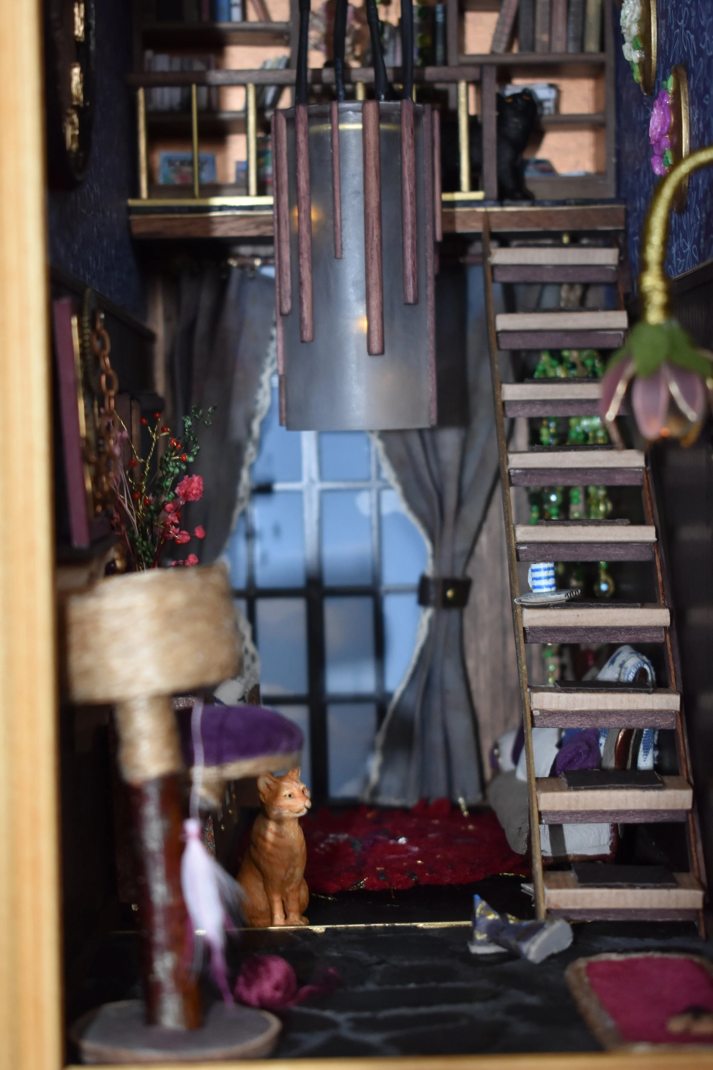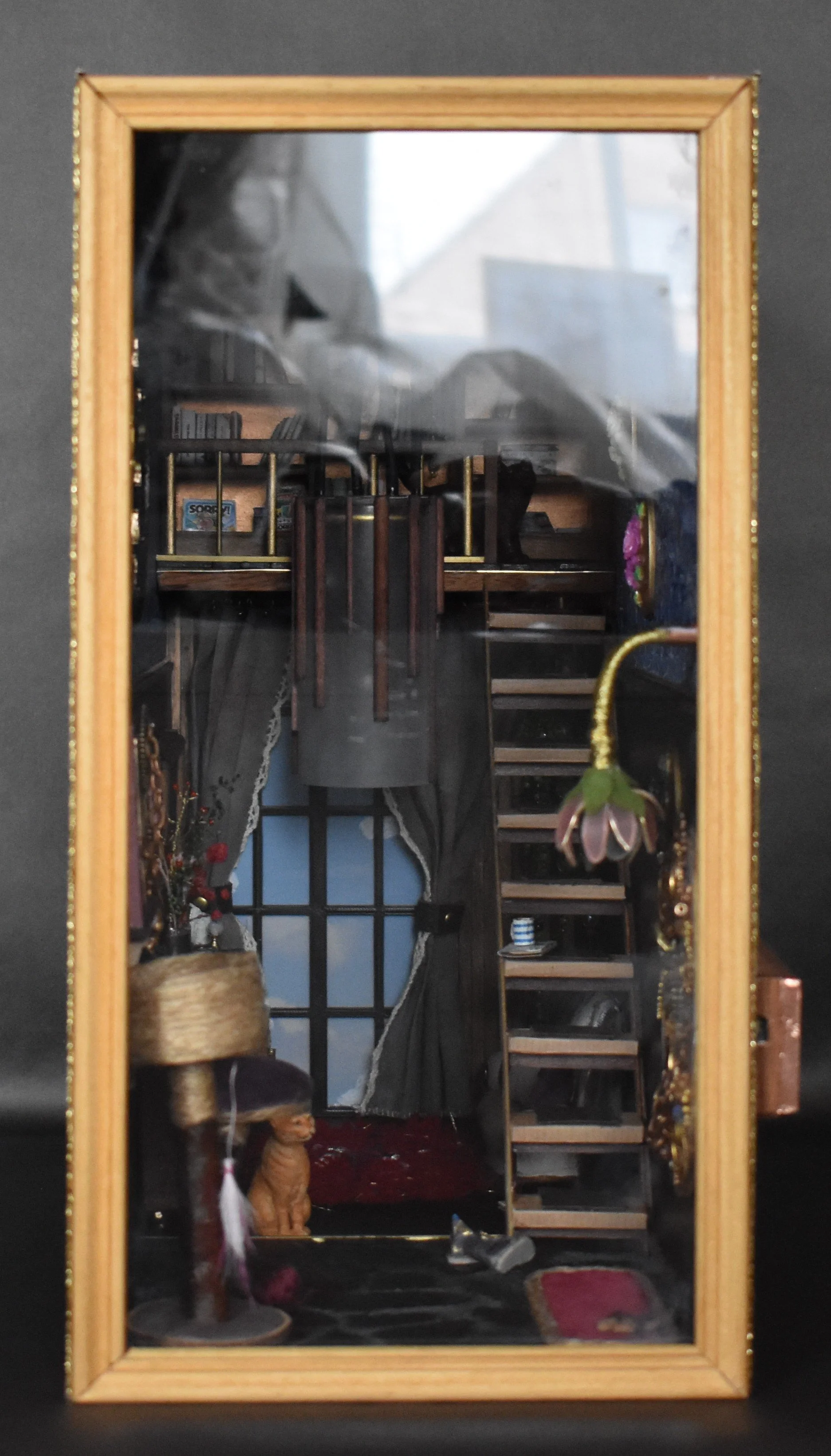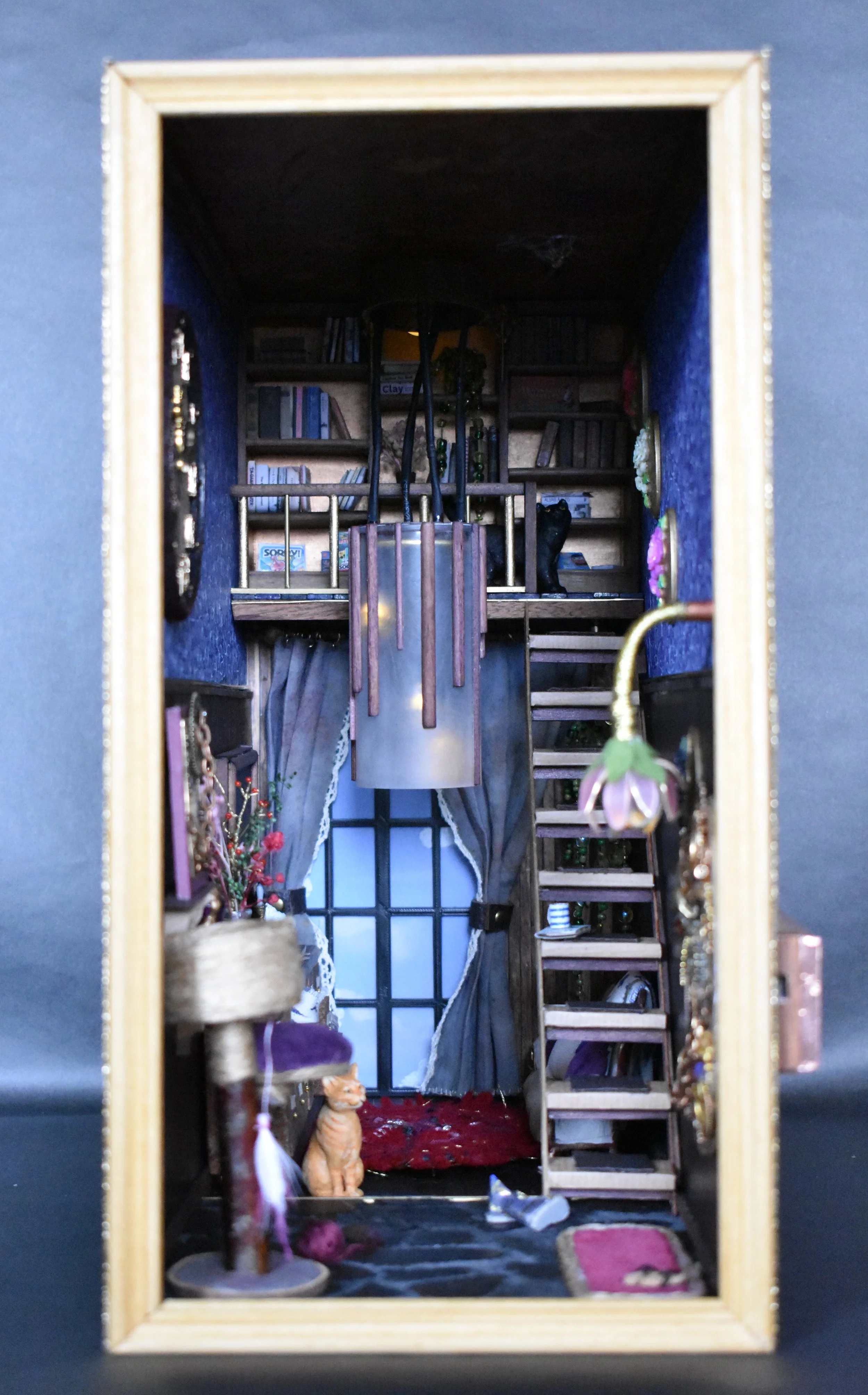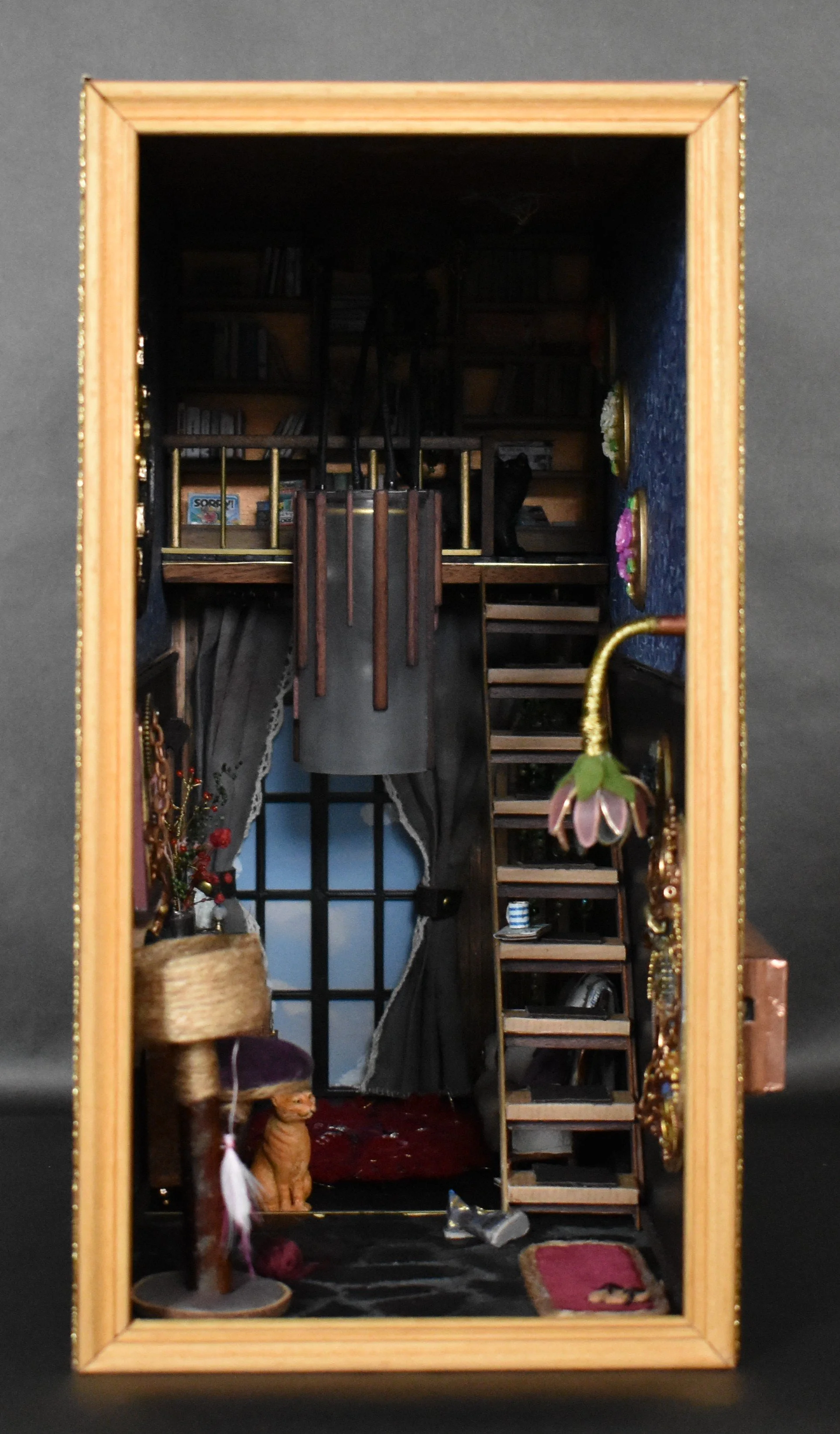It’s a creative addition to your book case, you can buy them or make them yourself. It’s a diorama of something you like, it can be a street, house, room,…