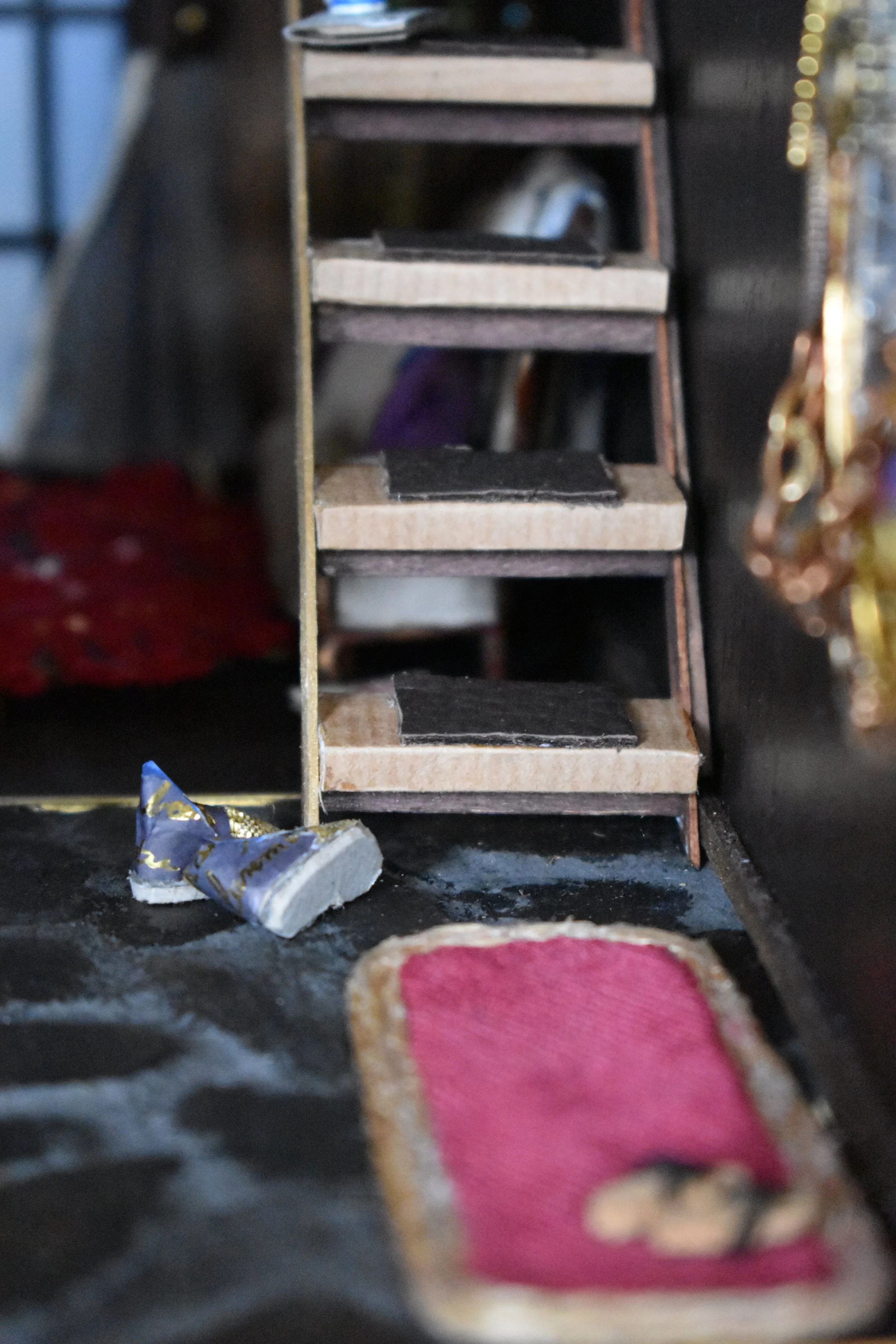 I made the steps of my stairs with cardboard and brown wrapping paper.