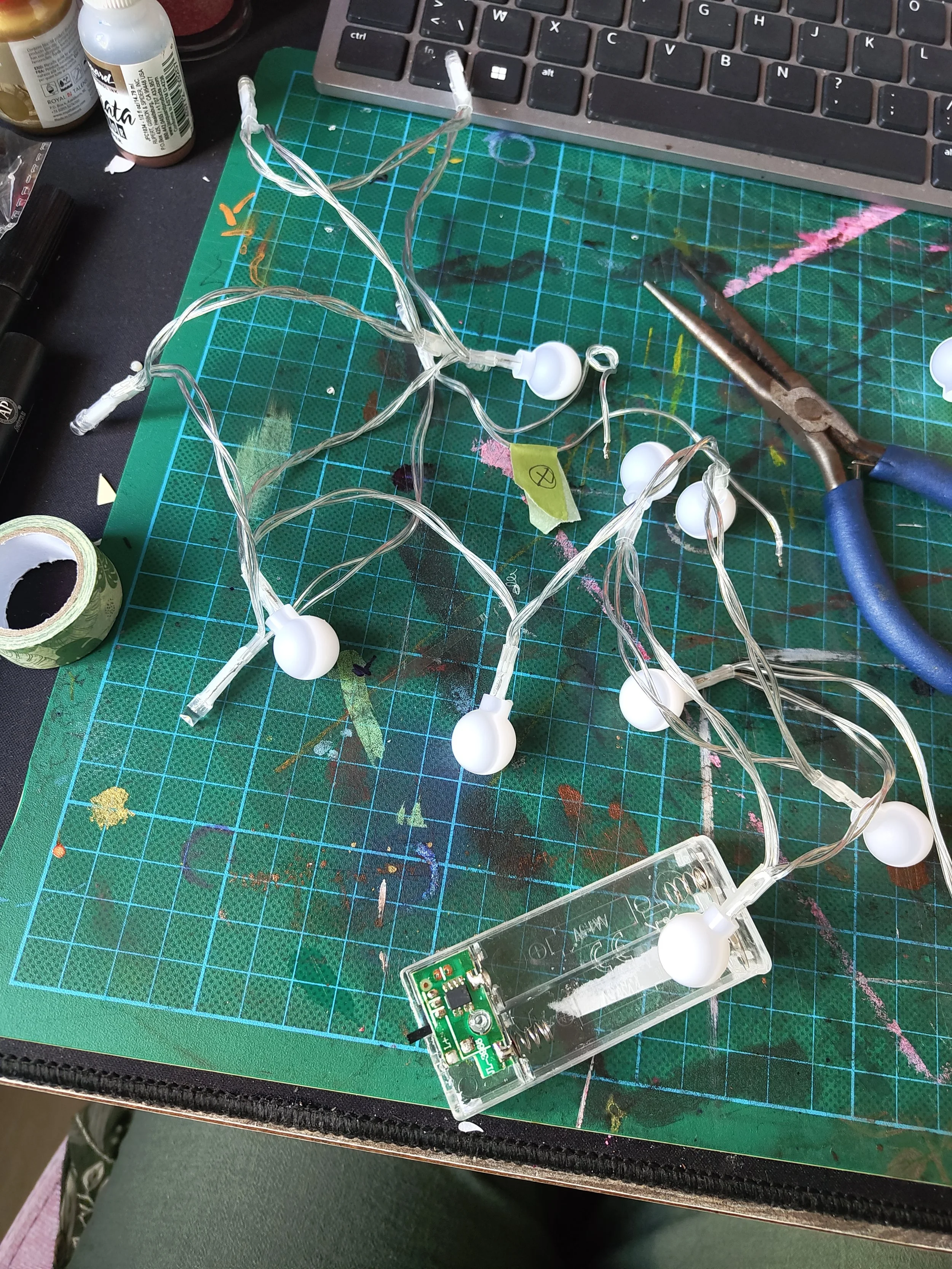 This is a picture I took from the lights I used in the Book Nook. I removed the white bulb thingy and seperated all the lights. Disconnected them from the power source, I used 1 white bulb and the rest got another shell.